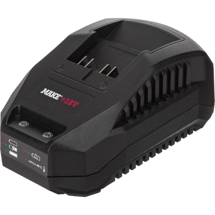 MAKE akkulaturi 2,4A. Yhteensopiva kaikkien MAKE 18V akkujen kanssa.